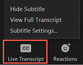 access transcript or change settings