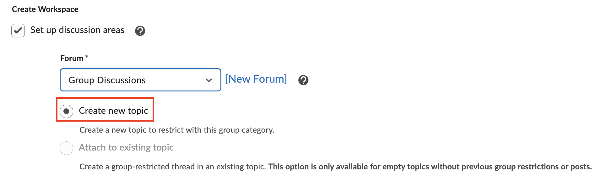 There are different ways to create group discusison forums and topics. Here is our recommended workflow.