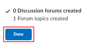 9. You receive a message sating that Forum topics will be created. Click Done.