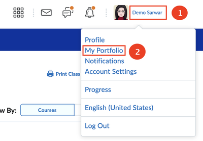 1. To access your Portfolio, click your name on the top right, and then click My Portfolio.
