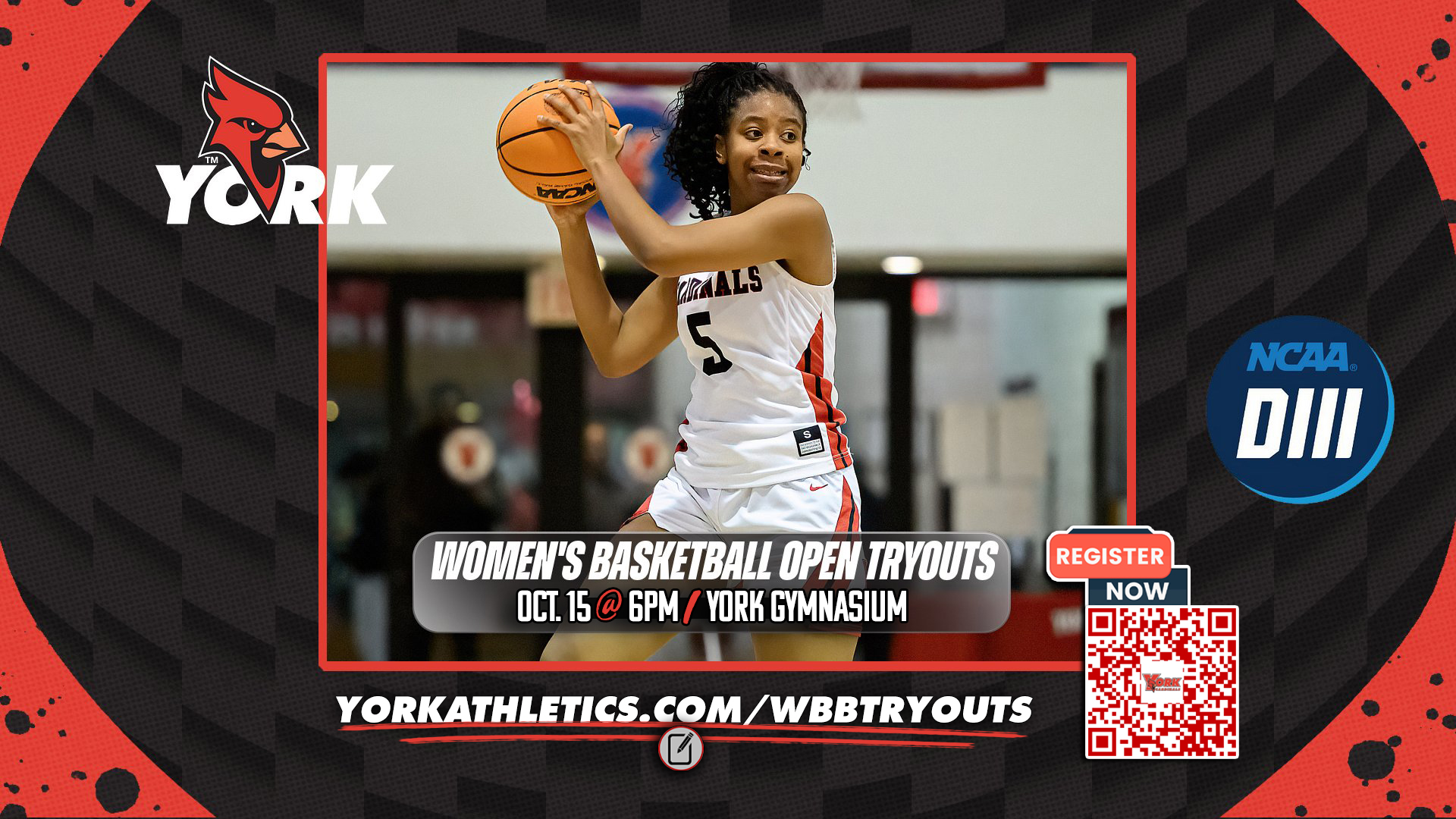 York Cardinals women’s basketball is hosting open tryouts for all full-time students interested in competing for a spot on the 2025-26 team roster. Don't miss your chance to be part of the team!