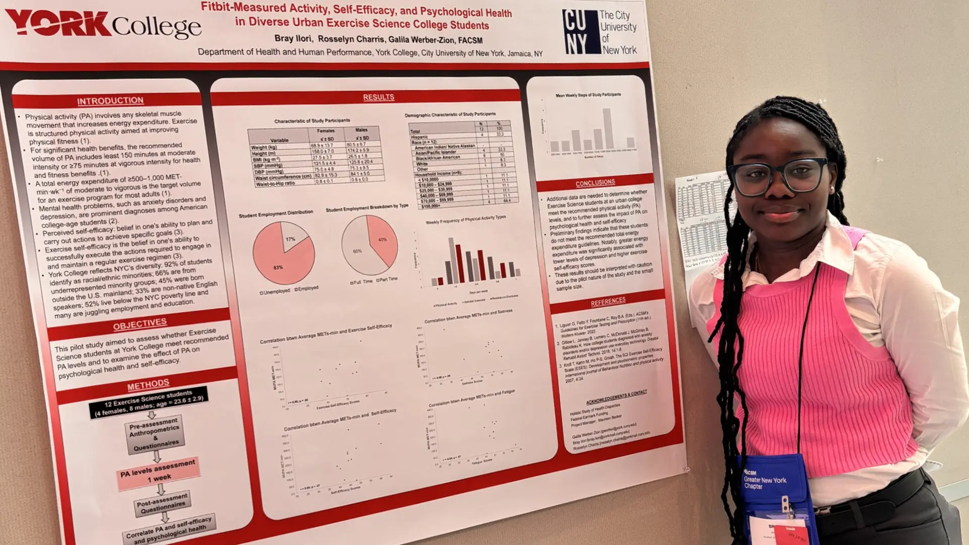 Ms. Ilori's scholarly exploration, a unique blend of technology and health science, was made possible, in part, by the use of Fitbit technology. Under the mentorship of Dr. Galila Werber-Zion, Associate Professor and program director of Exercise Science, the York College senior presented her abstract titled "Fitbit-Measured Activity, Self-Efficacy, and Psychological Health in Diverse Urban Exercise Science College Students."