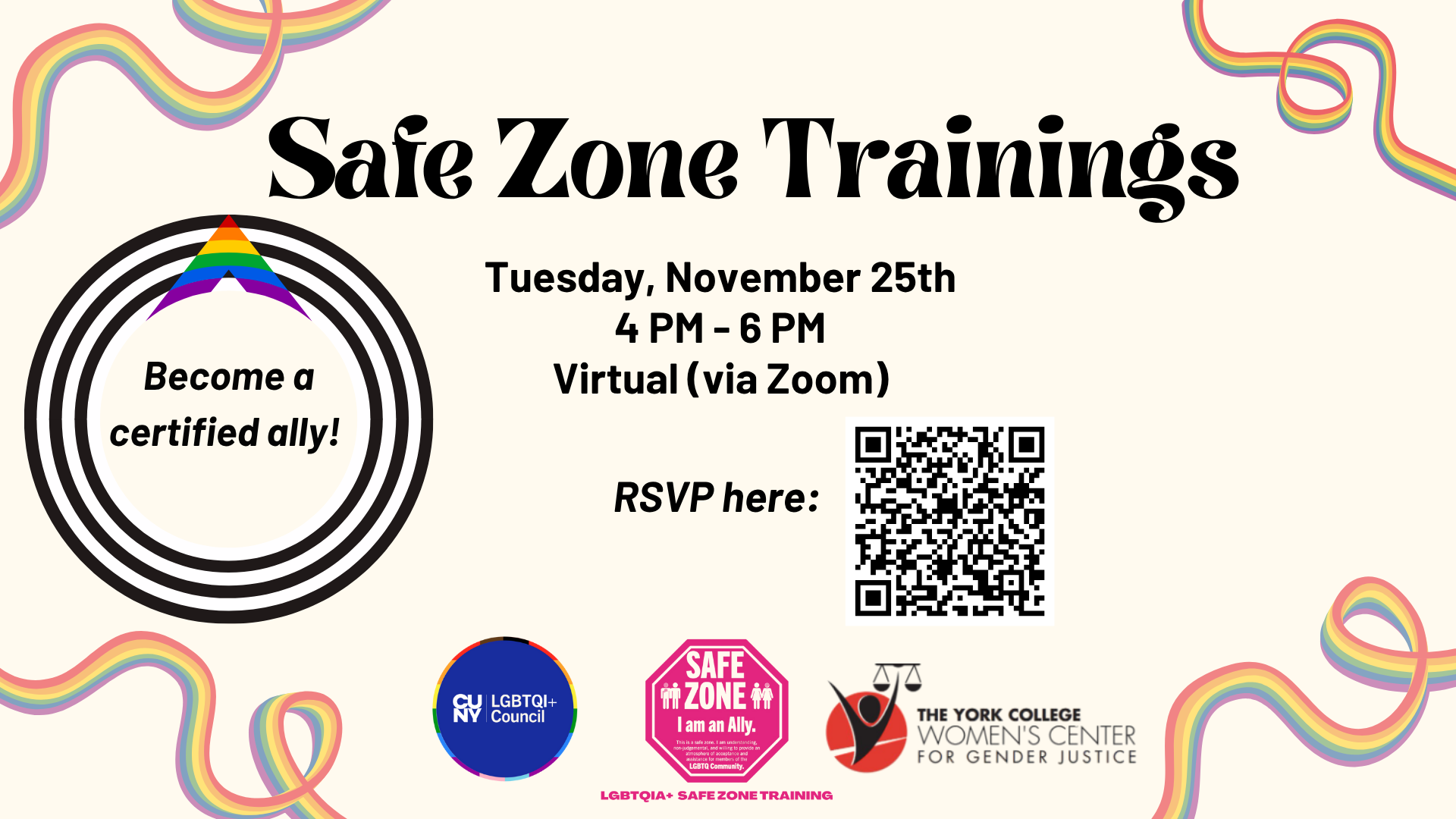 After completing the Safe Zone training, you will receive a certificate indicating that the zone is safe and supportive for students to approach. You must complete the entire workshop to receive your official safe zone certificate!